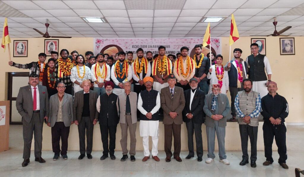 On this occasion 40 youth from various education disciplines motivated by the youth wing president joined the DSS. The energetic youngsters, mostly dressed in traditional Dogra attire and flaunting the Dogra turbans entered the Sabha Hall carrying Dogra flags and raising “Jai Duggar” slogans. They were cheerfully received by the members of the executive committee of the DSS.